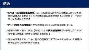 カンファレンスレポート「感情認識表出療法(Emotional Awareness and Expression Therapy:EAET)の概要と可能性」